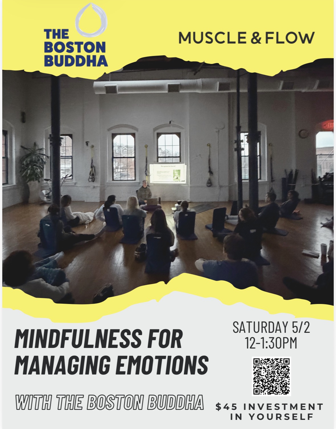 A 90-Minute Meditation Workshop · May 2 · 12:00 – 1:30 PM · Muscle & Flow Milton